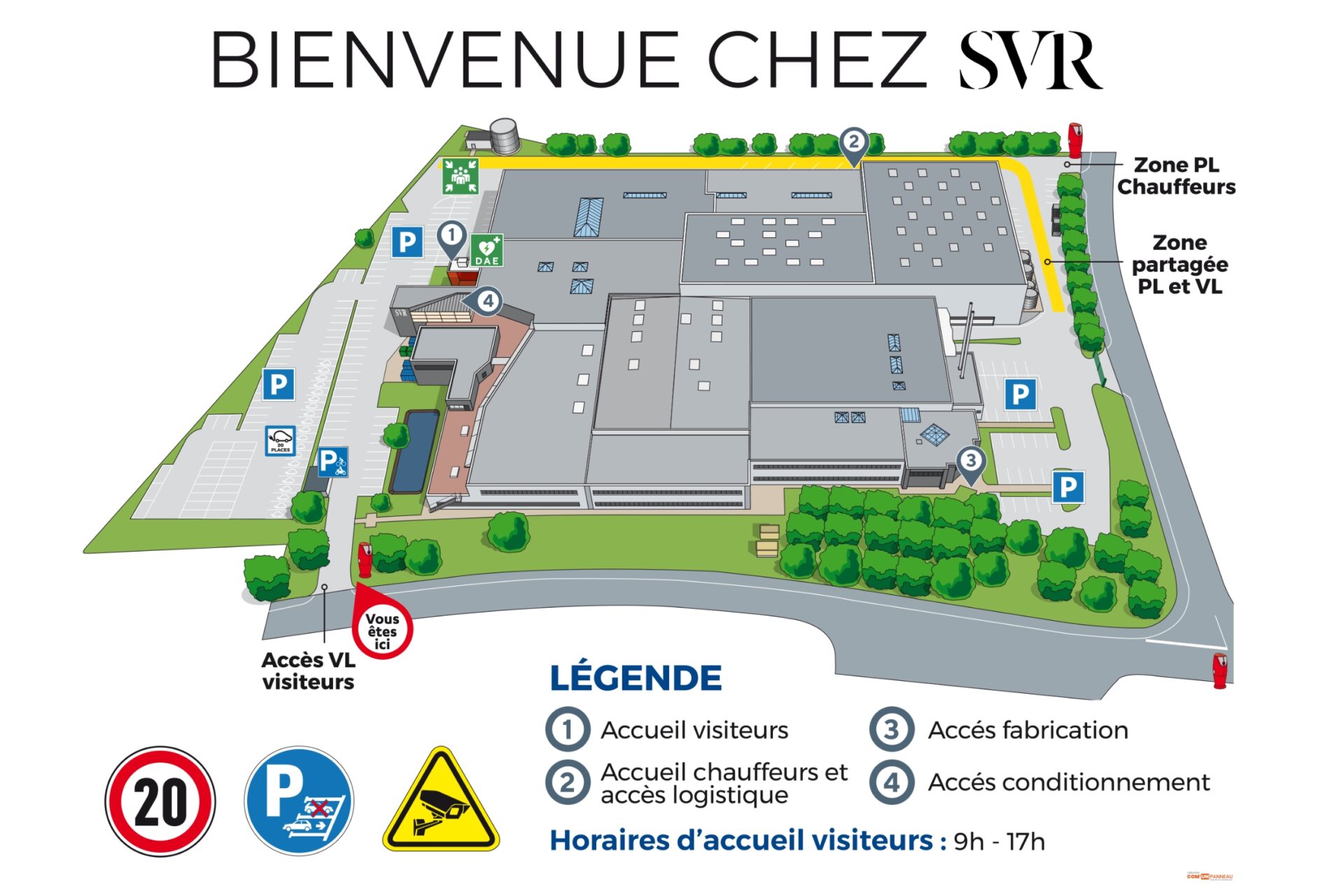 - Format adaptable selon implantation de votre panneau à l’entrée du site