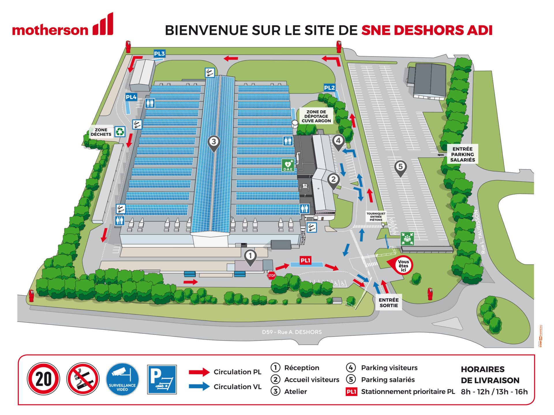 Création par Com’un panneau d’un plan de circulation pour le site la société SNE DESHORS ADI, acteur de la filière nucléaire, à Brive-la-Gaillarde (19).