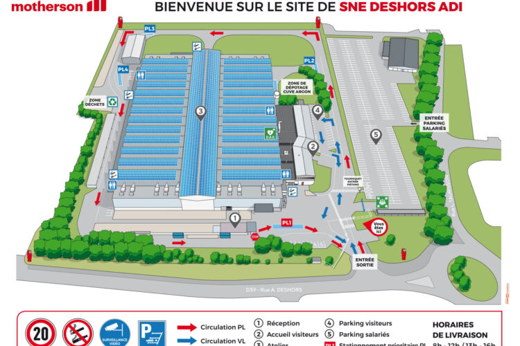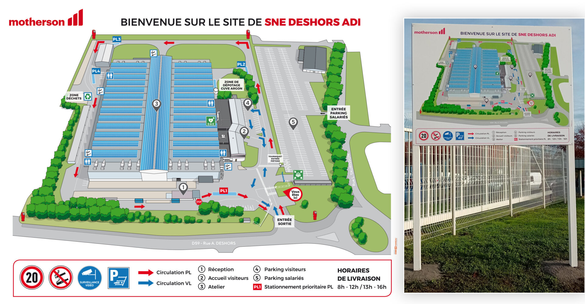 Création par Com’un panneau d’un plan de circulation pour un site industriel d’emballage et de carton, Corint Sud (Pyrénées-Atlantiques – 64).